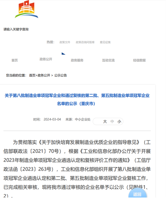 重泵公司入選國(guó)家制造業(yè)單項(xiàng)冠軍企業(yè)名單