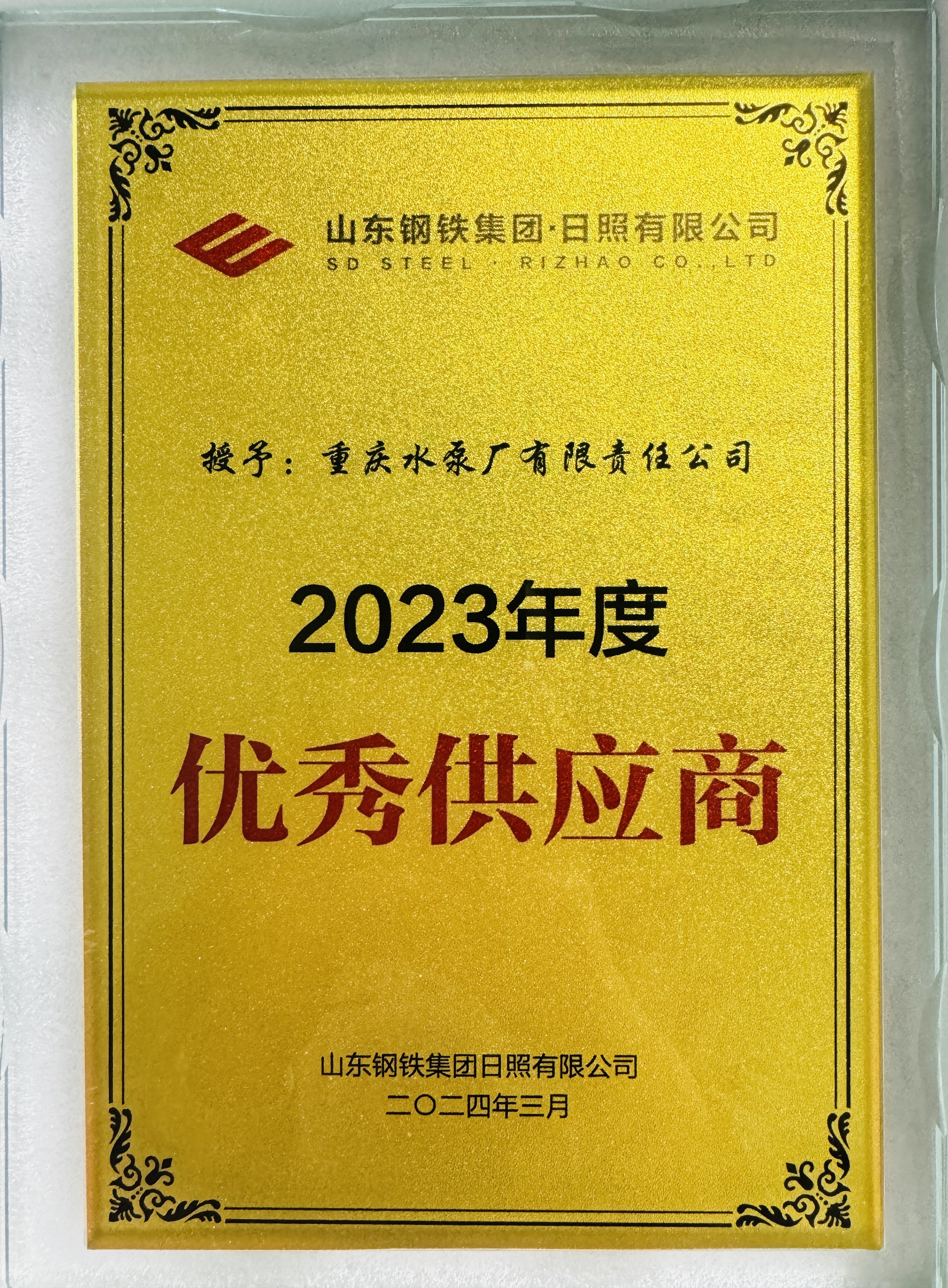 重泵公司獲評(píng)山東鋼鐵集團(tuán)日照有限公司2023年度優(yōu)秀供應(yīng)商