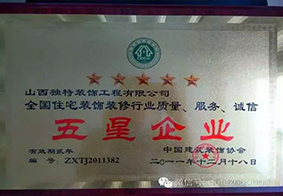 全國(guó)住宅裝飾5星企業(yè)