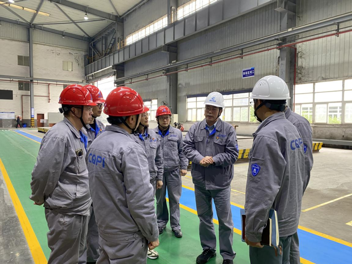 在車間現(xiàn)場,李方忠從探傷室建設(shè)、容器生產(chǎn)線搬遷、5S定置管理、信息化建設(shè)、廠房整改、生產(chǎn)組織、人員配置以及制度建設(shè)等方面,對系統(tǒng)成套平臺管理工作進行了現(xiàn)場指導(dǎo),并提出穩(wěn)步、高效的形成產(chǎn)出能力要求,確保公司全年生產(chǎn)經(jīng)營目標(biāo)。
